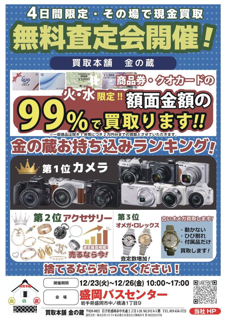 盛岡バスセンター東棟1階にて買取本舗 金の蔵(運営:㈱OTTO)による