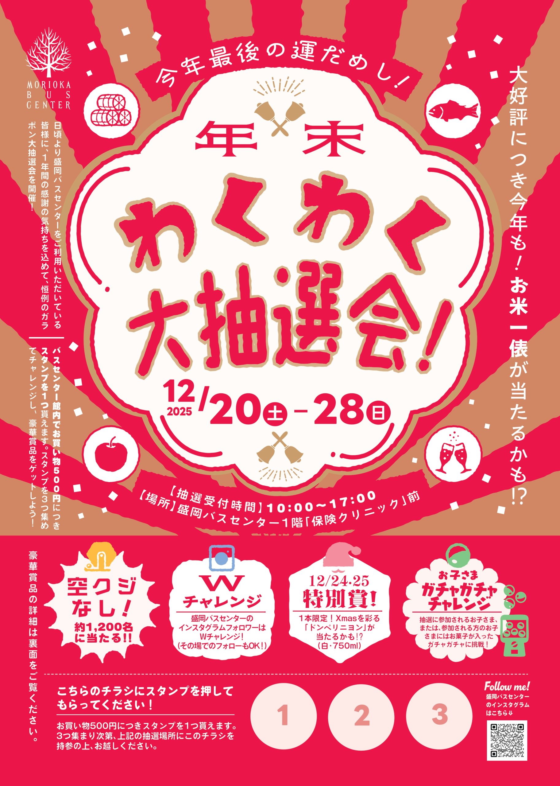 12/20(土)~12/28(日)の9日間、1年の感謝を込めて、盛岡バスセンター恒例の「年末わくわく大抽選会」を行います!